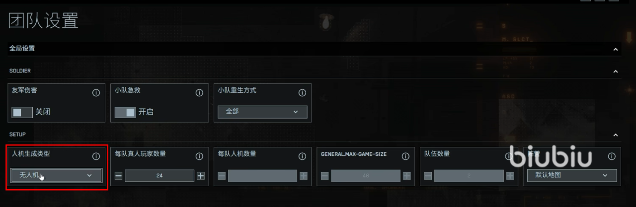 团队设置里,人机生成类型非常重要,一定要选择补位,这样AI会自动填充服务器中的空位,当真实玩家加入时,AI会被替换,确保服务器始终满员运行;
