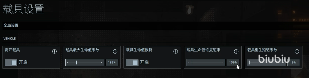 之后的载具设置,如果刷载具类的任务就可以调节这里,根据你刷什么任务,对应的拉高或者调低。比如载具重生系数低于0.1会使出场速度更快。