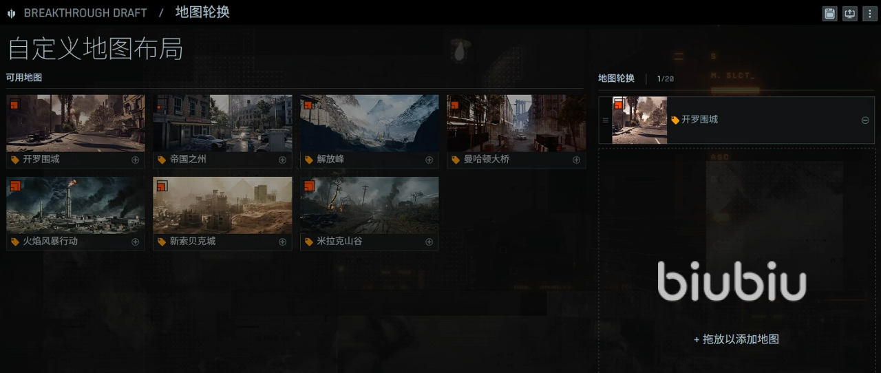 自定义地图布局可以选择自己喜欢的地图,推荐选开阔一些的,比如说解放峰。