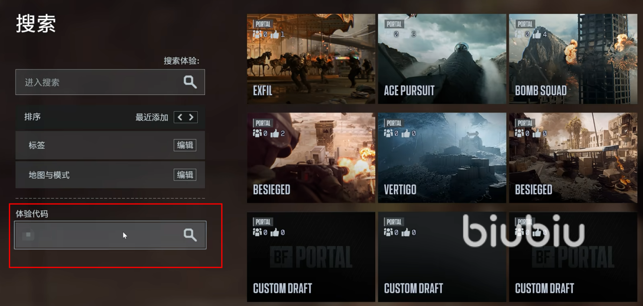 回到《战地6》的游戏主界面,进入"体验"板块,将复制的代码直接粘贴到搜索框中,即可找到你创建的服务器。选择"主持"(Host)来开启服务器即可。