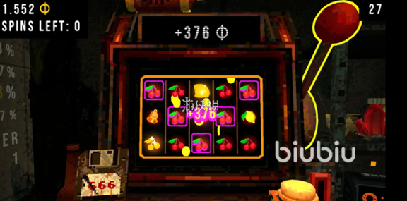 老虎机的操作原理十分简单,玩家需要点击投币,届时屏幕上会刷新各种符号,比如柠檬,樱桃等等,当它们能进行连线,不管是横平竖直或者斜方向的都可,出现的个数越多,可得到的金币奖励越多。在得到之后,每轮结束需要还清债务,留一定资金才能进入下一轮。