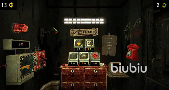 每个轮次结束的中间,是给玩家自由活动的空间的,这时候可以探索牢房当中的物品,在商店这里购买幸运道具,比如辣椒,幸运草等等,电话也要注意接听,最好避开红色电话,当变成白色的时候,就会提供有益状态让玩家领取,比如增加某个图案的出现概率,赚的钱就更多。另外要注意牢房角落有血痂纹理,点击互动3次之后会触发临时债务减免的状态,偶尔用用可以保命。