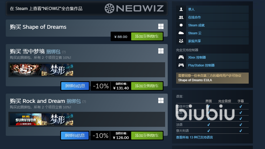 不过其还有另外2个捆绑包对外销售,目前也是以9折的优惠对外发售,一是原价为148元的雪中梦境捆绑包,现在的售价是133.40元,另外一个是原价为140元的Rock and Dream捆绑包,现在的售价为126元,两个捆绑包的内容有所区别,但是价格近乎相似,大家可以自己甄别。另外需要说明,游戏采用的国际服体验,所以在玩游戏之前,搭配使用游戏加速器必不可少,这里小伙伴们可以安装一个近期已完成主要功能升级的biubiu加速器。