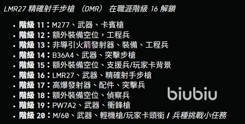 “精通等级”是一个独立的总体生涯等级,专属于每一把武器和每一类载具。通过使用特定的武器或载具进行击杀、助攻、造成伤害等游戏内行为,可以累积其专属的精通经验值。除了外观物品,还能解锁用于实战的功能性配件。下面列举一些具体的解锁等级和内容: