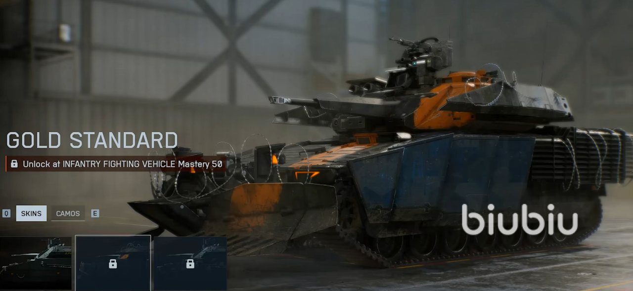 将任一载具的精通等级提升至50级,即可解锁专属的“黄金标准”(Gold Standard)皮肤。不过出于伪装实用性的考虑,这款皮肤的外观更偏向于橙与炭灰的配色,而非闪亮的金色。