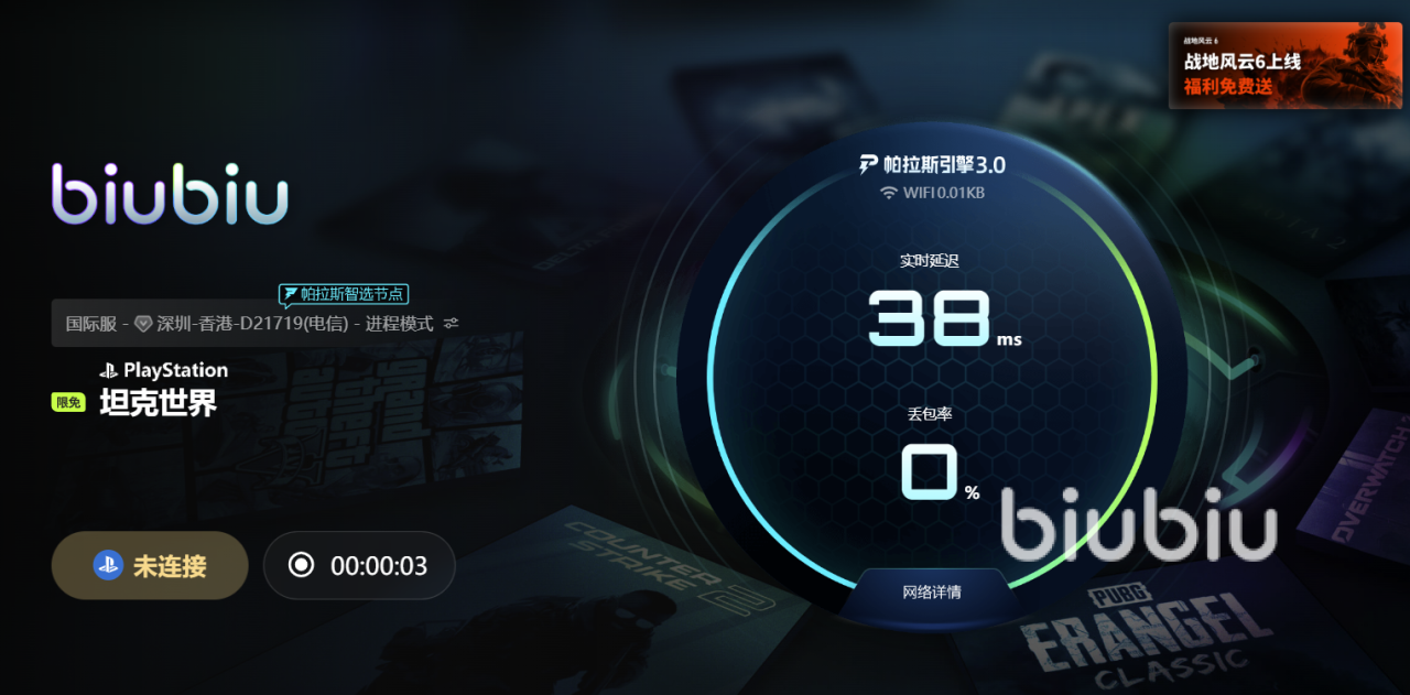 想要彻底解决这一痛点,普通网络优化已远远不够,专业级的网络加速工具才是制胜关键。而近期biubiu这款加速工具经历了重磅升级,为游戏伙伴们带来革命性的网络体验。此次升级不仅引入了全新的帕拉斯引擎3.0技术,更是邀请了冠军选手Aixleft深度参与功能研发,从职业竞技的实战需求出发,精准优化每一个网络传输细节。