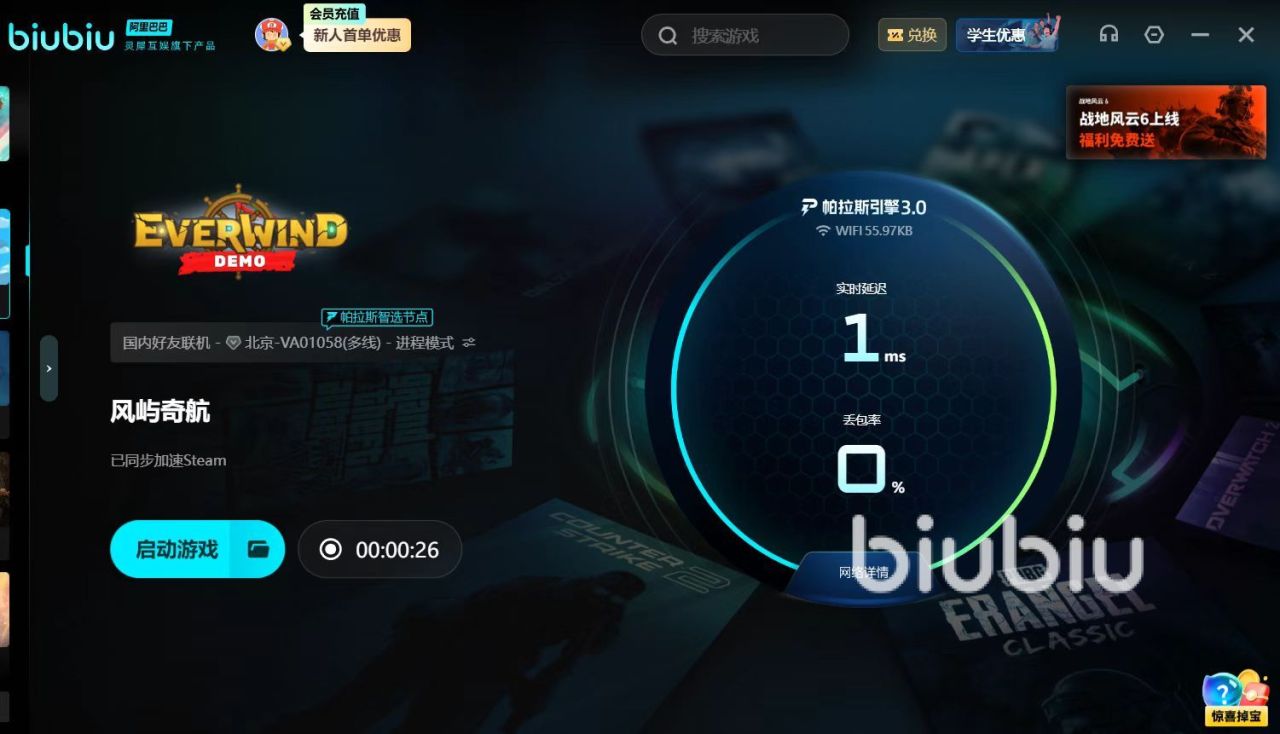 谈到biubiu加速器的福利,新人玩家尤其能获益满满。注册时系统自动赠送24小时免费试用,此外输入【biubiu不掉线】,还可解锁额外72小时免费加速时间。总计96小时的免费支持,覆盖了整个探索周期门槛极低。