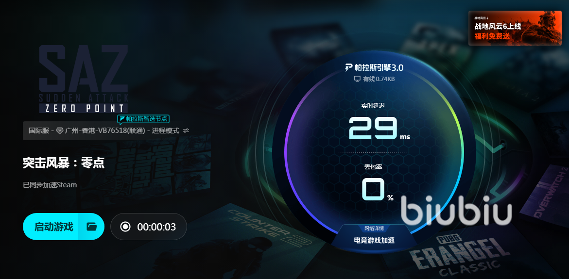 biubiu不仅在用户福利上诚意满满,更在核心技术层面持续突破,近期平台完成全面升级,正式推出帕拉斯引擎3.0,该引擎通过智能节点匹配与实时线路优化技术,为用户构建稳定流畅的网络环境,一旦监测到卡顿、延迟等网络波动,系统将自动无缝切换至最优线路,有效保障游戏流畅度。这一技术成效已获得知名职业选手Aixleft的认证,助力普通玩家也能轻松拥有职业级的低延迟、高稳定对战体验。
