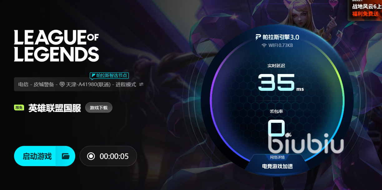 biubiu引入帕拉斯引擎3.0,与冠军选手Aixleft合作。当系统检测到网络异常时,会自动切换到稳定线路,保证数据传输顺畅。整个过程后台运行,无需手动调整,不占用过多电脑资源。启动加速后,无论是在激烈团战还是连续技能连招中,画面都能保持稳定,操作更加顺手,让玩家能够充分发挥技术水平,而不受帧率波动干扰。