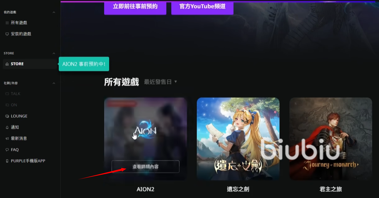 如果还想要预下载的话,页面往下拉可以看到让你安装PURPLE(也叫紫P),这就是永恒之塔2的官方游戏平台,我们下载安装之后,在里面可以看到永恒之塔2这个游戏,点进去就可以下载了。