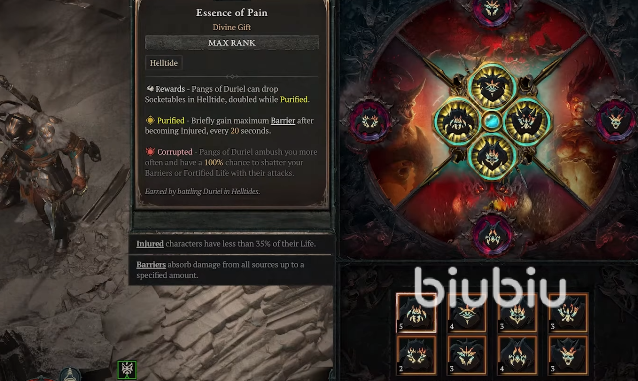 神圣赐福赛季系统:玩家将获得来自天使哈德列尔的“神圣恩赐”。每个赐礼包含三部分:基础奖励效果、一个会增加挑战难度的“腐化恩赐”,以及一个需要通过赛季声望解锁、能移除负面效果并使奖励翻倍的“净化恩赐”。