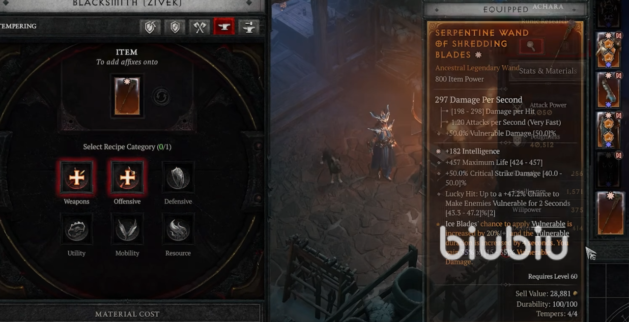 回火系统(Tempering):现在可以直接从一个配方库中选择特定的词缀附加到装备上,而过去是随机词缀。不过每件装备仅能拥有一个通过回火附加的词缀,但锻造次数没有限制,只需等待次数恢复即可再次操作。