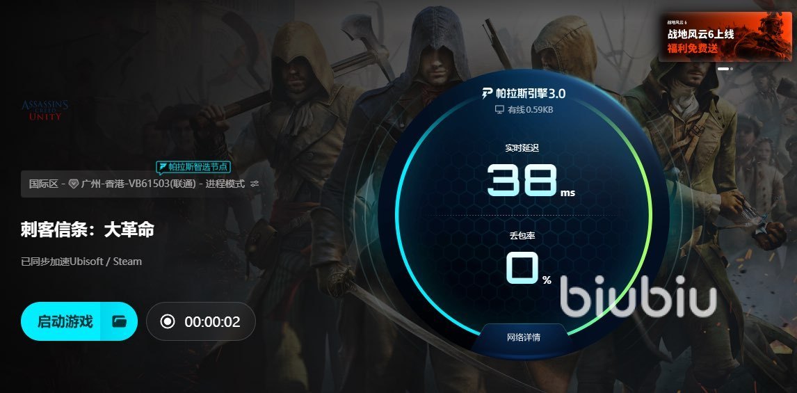 本期小编想将biubiu这款加速工具分享给大家,智能路由优化与全球节点加速技术,显著提升游戏连接稳定性,减少加载时间,很有效的规避网络波动导致的画面卡顿或任务中断。无论是在城市屋顶飞檐走壁,还是在人群中悄然接近目标,稳定的网络环境都能让你的操作更加精准、流畅。更令人期待的是,该加速器在近期完成了重磅升级,并且特别邀请了biubiu体验馆XDD一起参与联合调校,全新帕拉斯引擎3.0技术。保证游戏过程中指令响应及时,杜绝“鬼步”、延迟击杀等尴尬情况。而ping值被有效控制在理想范围内,为大家打造真正低延迟、高稳定的游戏环境。