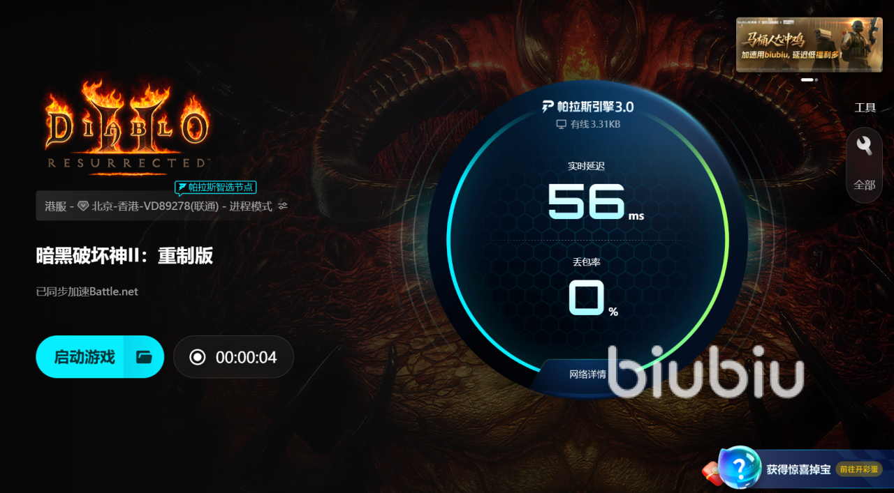 暗黑2重制版一打开就崩溃,并不是游戏拒绝玩家,而是网络在启动阶段掉链子,资源验证中断,客户端只能被迫退出。想让游戏顺利启动,必须先把这条数据通路拉直。biubiu加速器为暗黑2配置了专用节点,会直接连接游戏服务器核心线路,让信号不再绕远路,验证信息一条线返回,启动过程自然顺畅。注册账号即可获得二十四小时专线加速,在首页输入口令【biubiu不卡顿】还能再领七十二小时,总计四天稳定加速,从启动到刷图,全程不再担心突然被踢出庇护之地。