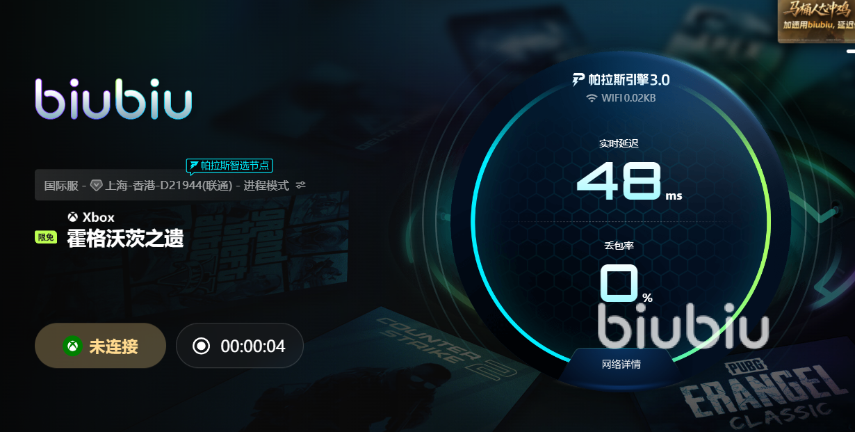 此时,使用biubiu加速器会是一个非常有效的解决方案。biubiu为端游玩家提供一站式网络优化服务,新注册用可获得24小时加速体验,让玩家先感受一整天的流畅网络环境。如果体验满意,还可以输入口令【biubiu不卡顿】再领取72小时免费加速时长,相当于连续三天的无障碍畅玩。《霍格沃茨之遗》属于网络交互密集型游戏,使用biubiu能有效优化跨区传输,显著降低延迟和丢包,减少因网络异常造成的闪退问题,保障每一段冒险都稳定顺滑。
