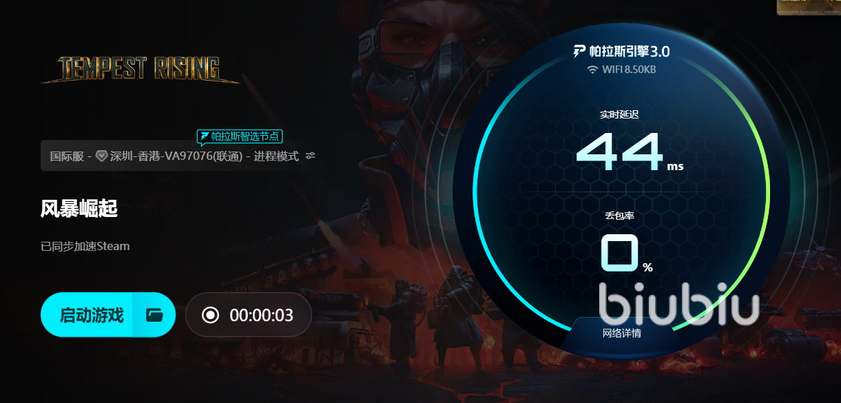 想要彻底解决这一类网络引发的闪退问题,关键在于让连接更稳定、延迟更低,而biubiu加速器正是为此而生。值得一提的是,biubiu还与产品体验官XDD达成合作,它针对《风暴崛起》这类大型RTS游戏进行了专项优化,具备全球智能分布式节点,可自动为玩家匹配最优线路,显著降低延迟与丢包率。biubiu全新升级,采用全新的帕拉斯引擎3.0,通过智能数据分流与动态调度技术,确保指令传输更加顺畅,即使在高负载战斗场景中,也能稳定保持连接。