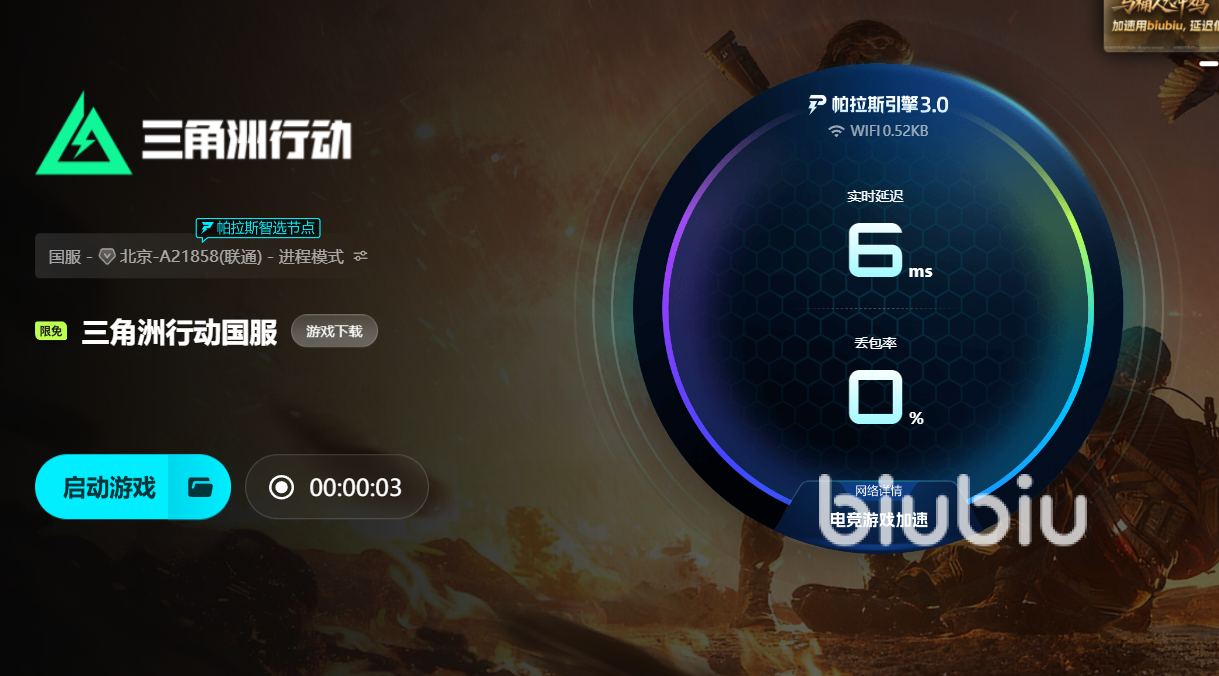 biubiu加速器在此方面表现极为出色。它搭载了全新的帕拉斯引擎3.0,能够实时检测网络状态,自动选择最优线路进行数据传输,有效降低延迟与丢包率,防止启动阶段的连接中断。同时,biubiu与冠军选手XDD合作,XDD作为体验官对引擎进行了针对性优化,通过实战数据反复调校,让网络响应速度更快、稳定性更高。如今,这一优化成果被全面应用于包括《三角洲行动》在内的多款热门射击游戏中,能让玩家在启动和运行阶段保持极佳的连接稳定性,不再被闪退、掉线困扰。
