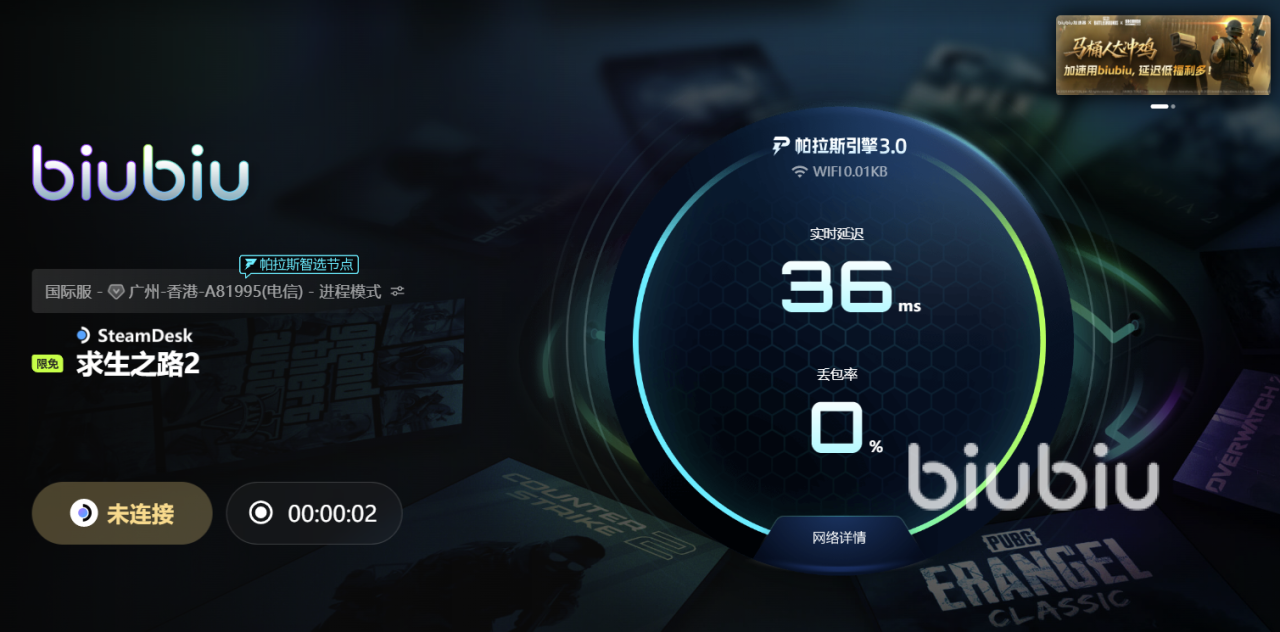 在联机运行的过程里边,高延迟、频繁掉线、加载卡顿是破坏体验的三大“杀手”,特别是对于求生之路这类,极度依赖实时协作的生存合作游戏,哪怕一秒的延迟都可能让全队陷入绝境。而跟人让人苦恼的是,后续如果要想从从Steam创意工坊下载了新地图或MOD时,等待的时间不紧过长,很多时候还需要重新开始,而这些问题,其实都源于网络连接不稳定或节点距离过远。想要彻底的解决这一切,不妨来尝试下文中的这款biubiu加速工具。