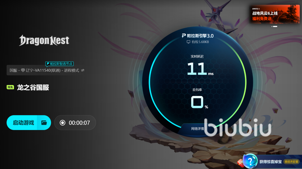 打开biubiu就像为你的角色开辟一条专属战斗通路。你启动客户端,输入龙之谷搜索并选择游戏,点击立即加速,几秒钟后网络会自动连接到为你匹配的稳定线路。你不需要进行复杂设置,也不必理解节点技术,只要看到加速成功,就可以直接进入游戏,测试你在龙本中是否能保持稳帧不掉线。
