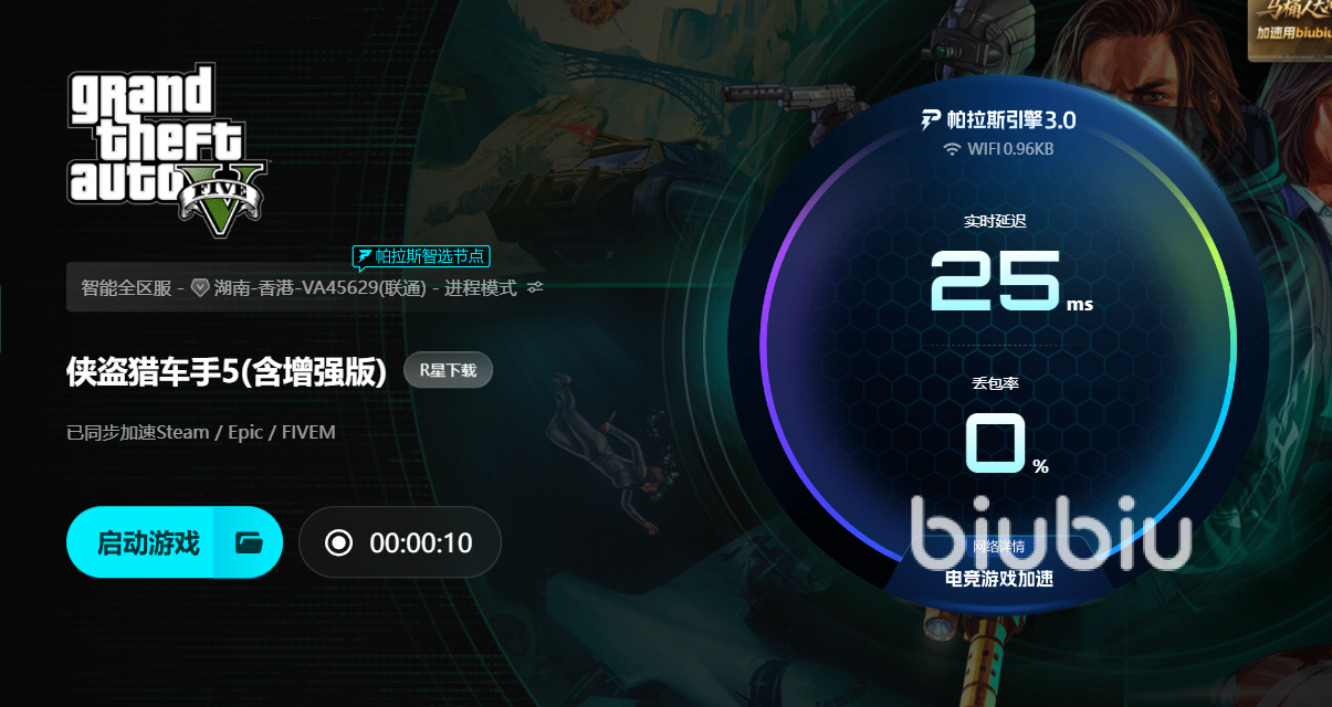 针对GTA 5玩家常遇的网络困扰,biubiu加速器推出了专属优化方案,从技术到体验全方位保障游戏流畅。其核心依托帕拉斯引擎3.0,能实时分析全球网络动态,自主规划最优数据传输路径;一旦监测到网络拥堵或数据丢包,会立即切换至备用节点,从源头减少延迟与数据阻塞,避免因网络问题影响游戏进程。