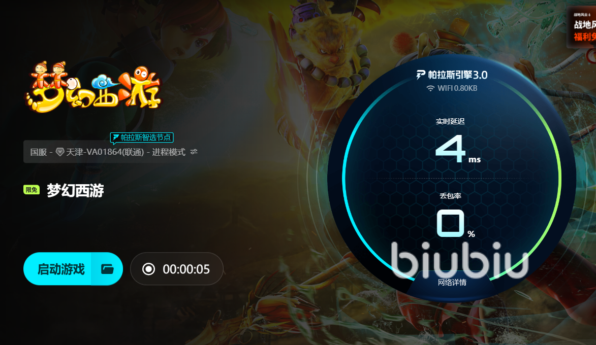 导致频繁掉线的原因有很多,比如家庭网络信号波动、路由器负载过高,或是游戏服务器与本地网络节点连接不稳定,其中网络链路不畅是最主要的因素。想要从根源解决问题,使用专业游戏加速器是高效选择,而biubiu加速器就是针对这类网游痛点设计的工具。它能智能扫描全网节点,自动匹配与《梦幻西游》服务器连接最稳定的线路,大幅降低数据传输的延迟和丢包率,让登录状态更持久。无论是长时间刷副本、打帮战,还是持续蹲守稀有召唤兽,都能减少掉线概率,不用再担心玩到一半被迫中断。