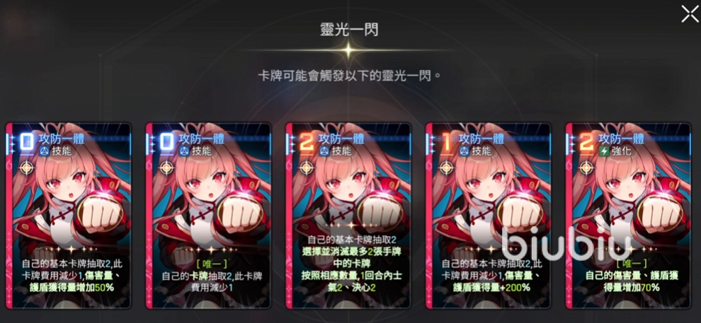 最后一张变成二费强化卡,当场战斗自己的伤害量和护盾量都会增加70%。