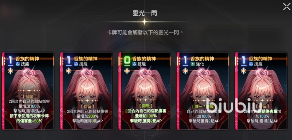 第二、三张伤害跟馀烬增加,不过第三张移除了连击,变成了接下来使用的热情卡牌额外攻击一次。因为梅铃本身就拥有一张倍率比较高的攻击卡,所以这张卡的收益还是很不错的。最后一张比较吃队伍中其他战斗员的属性以及牌组的构成。