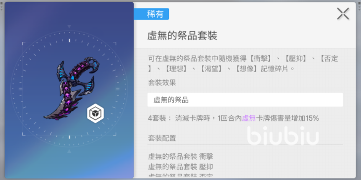 虚无的祭品:消灭敌人后,自身攻击力提升,可叠加。