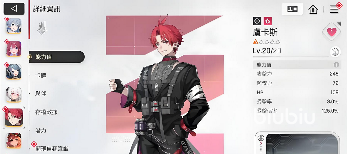 卢卡斯在游戏中是卢克的双胞胎哥哥,他原本的发色是深色的,后来却染成了红色,他的个性和卢克正好相反,既开朗又调皮,所以深受大家的欢迎。在技能方面,卢卡斯的自我意识技能是全弹发射,可以对全体敌人造成伤害。起始卡牌为机枪、防护燃烧弹和扩容弹夹。机枪能打出伤害,燃烧防护弹可带来护盾,扩容弹夹在回合开始时生成1张发射器弹药。