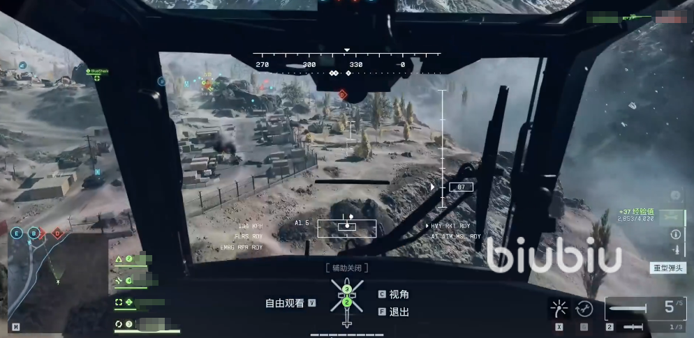 在战斗的时候,其中机炮射击默认是左键连续开火,可以让我们去压制地面单位或轻型装甲目标,不过到时要注意子弹散布范围随距离增加而扩大,得保持适当射程以提高自身的命中率,若装备了对空或者对地导弹,那么就能借助热键锁定目标在进行释放,尤其对付敌方车辆效果很是明显。