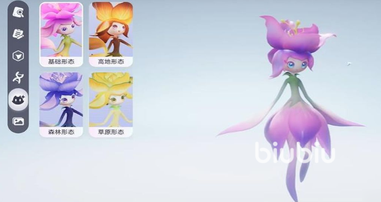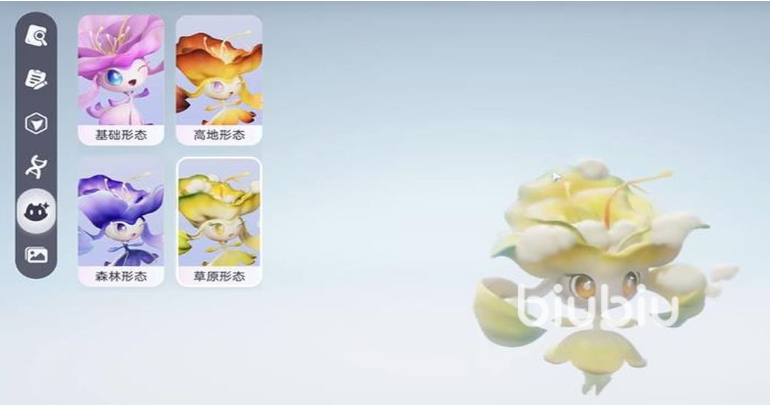 例如,适应高地环境的飘飘花通常呈现橙红色调;森林类型的则偏向幽深蓝色,并带有藤蔓与叶片装饰;而较为罕见的草原形态飘飘花,则以黄白相间的清新配色为主,融入了典型的草原植物特征。这些原始特征将在进化后继续体现在花舞兰的外观之上,带来丰富的视觉变化。
