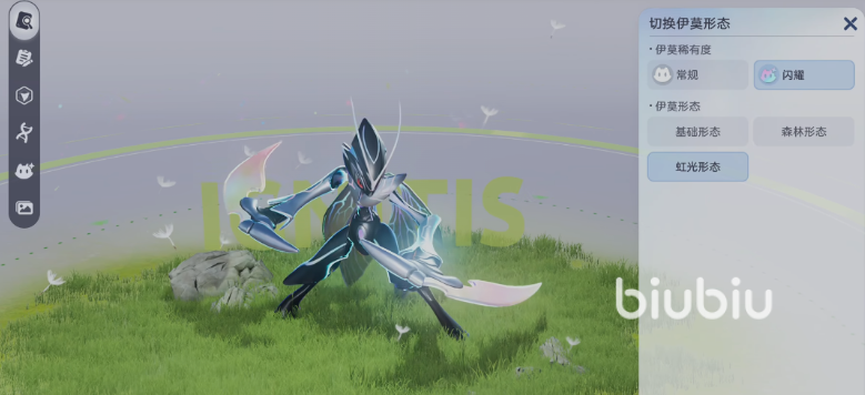 虹闪螳螂的初始形态为幽爪镰,属于草属性精灵,外形偏向可爱风格,容易辨识。当幽爪镰完成进化后,便会转变为淬刃螳螂,其造型发生显著变化,呈现出强烈的机械科技感,整体设计更具未来战士的气息。作为刺客定位的宠兽,淬刃螳螂拥有极高的敏捷性和突袭能力,在队伍中常担任先手输出或收割角色。
