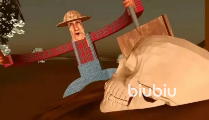 游戏中的动态元素极大提升了农场的真实感与活力。天空中的太阳随时间变化色彩:清晨呈淡橙黄,正午明亮耀眼,傍晚染成橘红并映照粉色云霞,夜晚则化为星空,星星闪烁不停。地面也不乏生机:蝴蝶在花丛中翩跹飞舞,蜜蜂忙碌采蜜,小狗时常穿梭于门口、田边与房屋之间来回奔跑。约翰本人身穿蓝色工装,脚踩棕色靴子,头戴草帽,动作流畅自然——播种时弯腰撒种,收割时挥动镰刀,割下的麦秆整齐堆叠。这些丰富的互动细节让整个农场显得格外生动。
