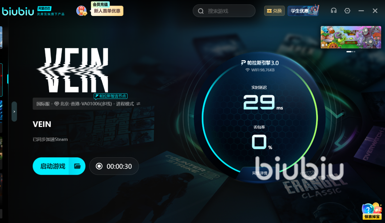 更值得欣喜的是,biubiu加速器为新老用户准备了贴心加速大礼包,注册即获赠低延迟24小时,此外输入【biubiu不掉线】即可额外畅快体验长达72小时的VIP高速通道使用权,合并享受最高96小时的免费加速时间。