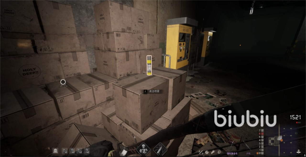 后视镜,作为重要物资位于楼层的2、3层的位置,在这里可以找到废弃的汽车和非常多可以打开的箱子,注意这里还有很多的药物和其他值钱的东西,可以帮助各位快速的致富,同时还会有不少资源可以任务道具让各位搜索;在3楼和8楼是药品仓库,可以在桌子上见到8L血液包一袋,12L正上方E10位置有一个沙发,类似王座;一楼左下C3位置有香草茶位于货架下方。