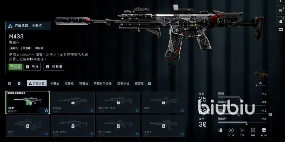 配件上,可以去选择单孔制退器、409毫米螺旋凹槽枪管、30发标准弹匣、BF-2M倍镜、经典垂直握把、5MW红点瞄准镜。该武器本身就是以出色的瞄准为主,虽然说射速略低但单发伤害很高,十分适合中远距离的点射作战,战术定位上也很不错,让玩家可以去利用高精度优势压制敌方关键目标,配合队友推进或是占领制高点等都是很不错的。