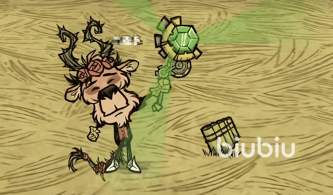 当玩家远离时,它会主动追上,而一旦停下,便会开始有节奏地左右跳跃,同时晃动头部的叶片并发出声响。值得注意的是,该单位能够跟随穿越虫洞,在白天来临时自动钻入地面,恢复为静止的植物状态。