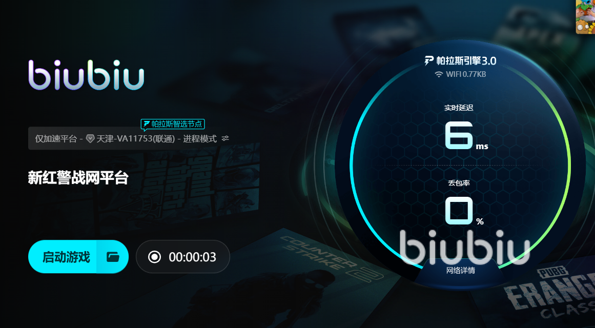 针对这些网络问题,专业游戏加速器是更直接的解决方案,而biubiu加速器对《红警3》的适配尤为精准。它依托覆盖国内多区域的海量云端节点,能为不同地区的玩家匹配最近的传输节点,比如南方玩家自动连接华南节点,北方玩家匹配华北节点,从物理距离上缩短数据传输路径,大幅降低延迟和丢包率。更关键的是,它引入了帕拉斯引擎3.0,还联合冠军选手biubiu体验官XDD做了专项优化。