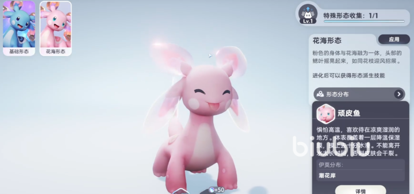 顽皮鱼外形呆萌可爱,头顶带有明显的莲叶状装饰,整体形象清新自然。但需要注意的是,该宠物并非直接可捕获,而是由基础形态“连顶鱼”进化而来。因此,想要获得顽皮鱼,必须先在地图中寻找并捕捉其初始形态——连顶鱼。这类宠物通常栖息于水域附近或湖泊边缘地带,玩家在探索过程中应重点关注这些区域。