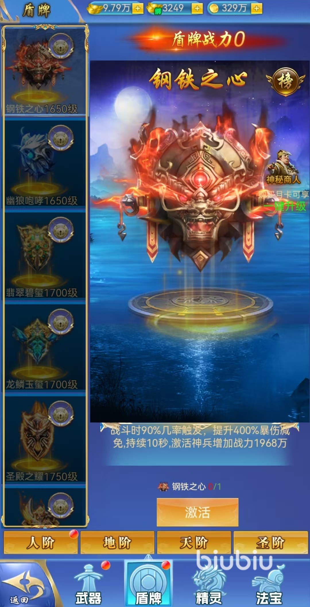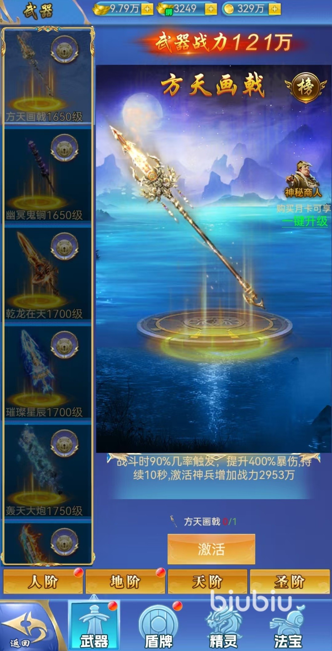 游戏中共设有四大类神器:武器、盾牌、精灵与法宝。每种神器均划分为四个等级,由低至高依次为人阶、地阶、天阶和圣阶。不同品阶的神器在属性加成与技能强度上存在显著差异。已激活的神器不仅提供基础属性增益,其专属技能也会实时生效,叠加使用时可形成强力的战斗辅助效果。尤其在挑战高难度副本或PVP对抗中,神器技能往往能成为扭转战局的关键因素。