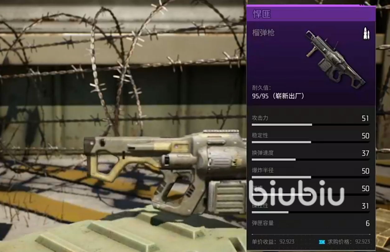 悍匪拥有51点攻击力、50点稳定性、37点换弹速度、50点爆炸半径、50点弹速、31点操控性以及6发的弹匣容量。这款武器以单发破坏力著称,一发命中即可对大范围目标造成毁灭性打击,在对抗密集阵型或据点防守时极具威慑力。