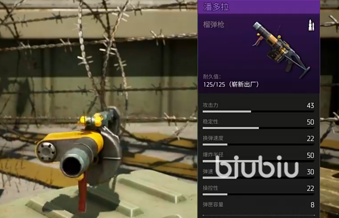 潘多拉的属性表现为:攻击力43、稳定性50、换弹速度22、爆炸半径50、弹速30、操控性22、弹匣容量为8发。相较于前者,这款榴弹炮更注重持续作战能力,具备更高的弹药储备和稳定的火力延续性,能够在移动中完成多次投射。