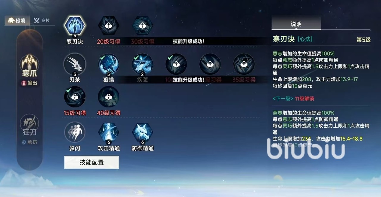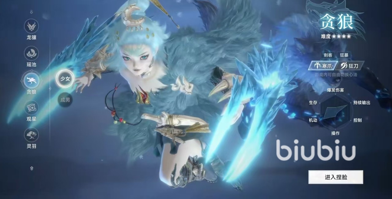 加入贪狼后,玩家可修习两种核心心法:寒爪与狂刀。寒爪以利爪为武器载体,主打高速突袭与灵活位移,整体节奏迅疾凌厉,擅长短时间内打出高额伤害。拥有狼族血脉加持的修行者,在感官反应与身体协调性方面远超常人,能在战场中以迅猛爪击撕裂敌阵。该心法强调如狼般潜行、突袭与爆发,配合高机动性可在危急时刻扭转战局。