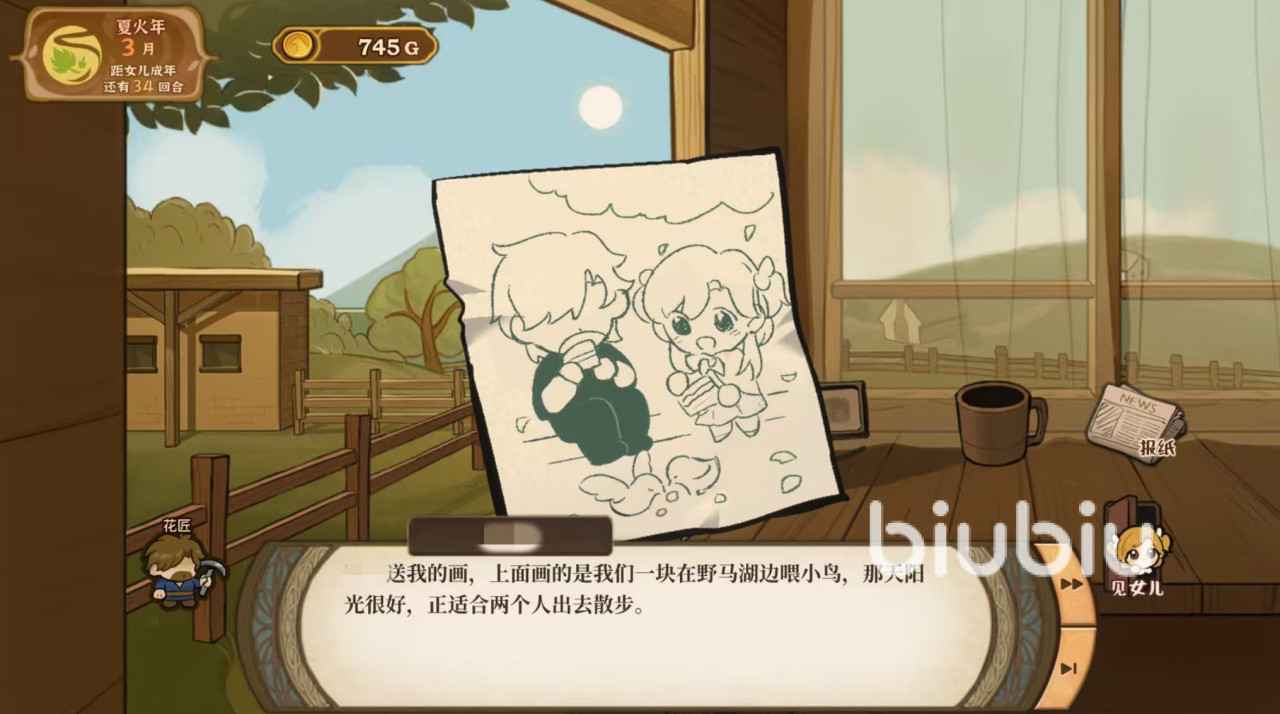 视觉呈现方面,游戏采用纯2D美术风格,整体色调柔和清新,界面布局清晰有序,虽功能繁多却不显杂乱。人物设计贴合魔幻世界观,主角女儿的形象可爱动人,从少年到青年阶段均有细致刻画,外形变化与成长节奏同步。交互设计注重情感表达,父女之间的点滴互动温馨感人,营造出浓厚的家庭氛围。