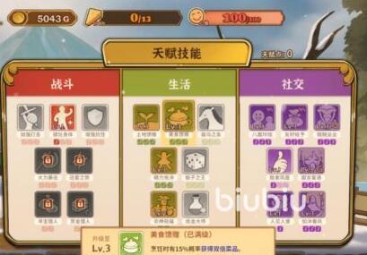 游戏中共设有三种天赋体系,分别对应不同的成长方向。在初期阶段,并非所有能力都能立即发挥作用,因此建议优先投资于战斗与生活两类天赋。战斗类天赋可显著增强角色在早期遭遇敌人时的应对能力,确保探索过程更加安全。而在生活类天赋中,推荐优先提升“土地馈赠”与“美食馈赠”,这两项技能有助于制作出更具效果的食物,食用后不仅能改善心情值,还能提升行动效率。