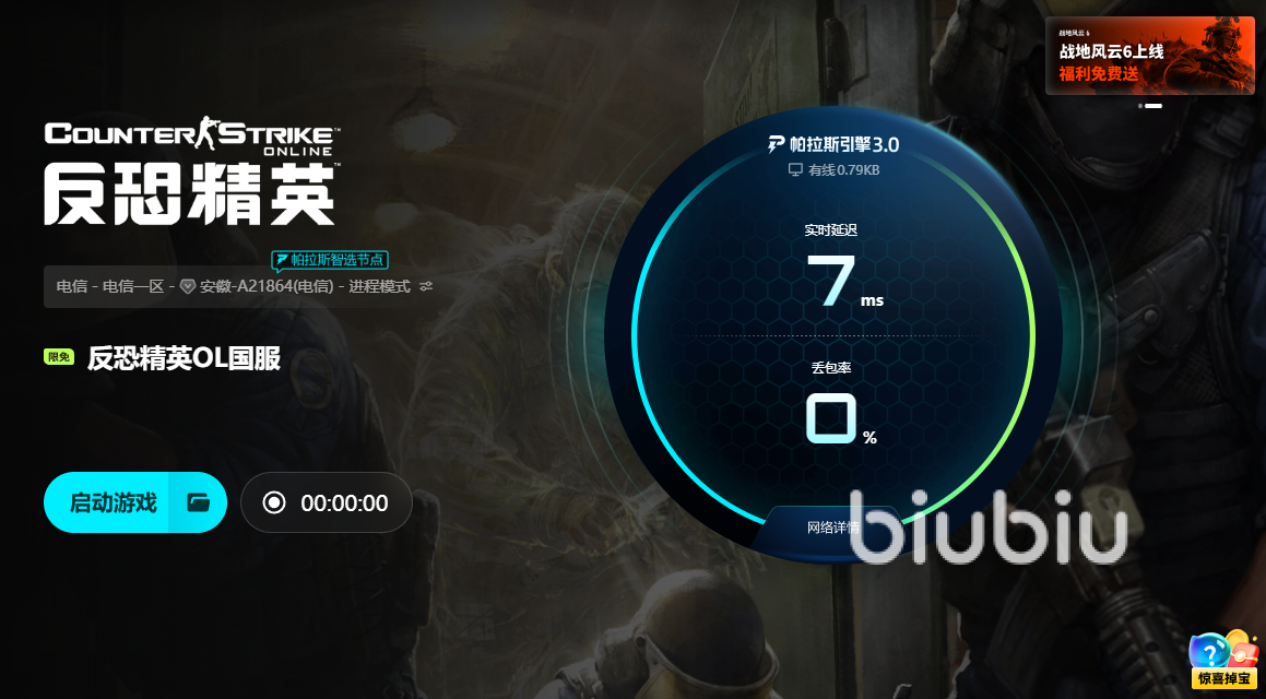 即便面对突发网络波动,biubiu也具备相应的技术储备。针对服务器端瞬时高负载的情况,平台配备了多路并发发包技术;而在本地网络管理方面,引入全新3.0架构的帕拉斯系统后,biubiu自主研发了智能调度算法,具备动态匹配最优节点和丢失数据自动补传的能力,确保游戏过程持续流畅。