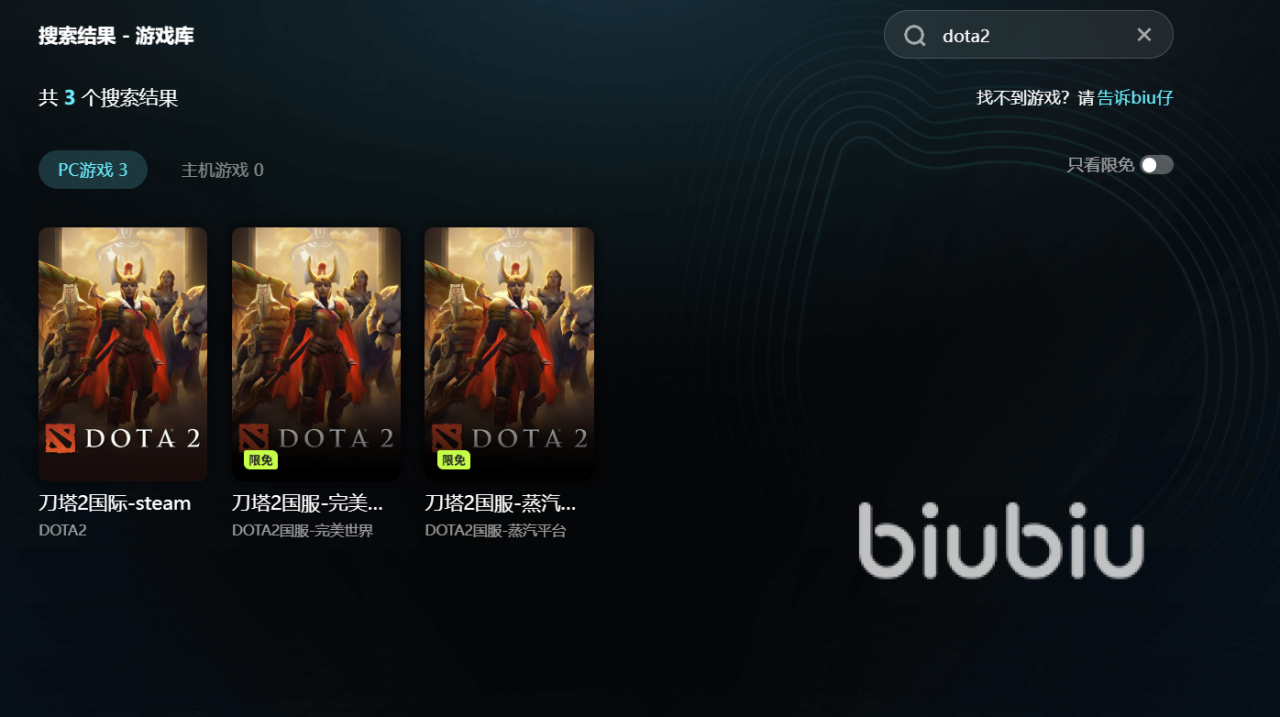 对于首次使用的用户,平台提供了极具吸引力的新手福利。注册并登录即可领取24小时免费加速时长,所有用户均可通过输入口令【biubiu不卡顿】额外获得72小时会员体验权限,适用于包括Dota2在内的任意支持游戏,实现全时段流畅加速。即使免费时长耗尽,biubiu仍提供“限免游戏池”功能,每日轮换开放多款热门游戏的免费加速服务,Steam平台上的主流作品也常驻其中,供玩家限时畅玩。