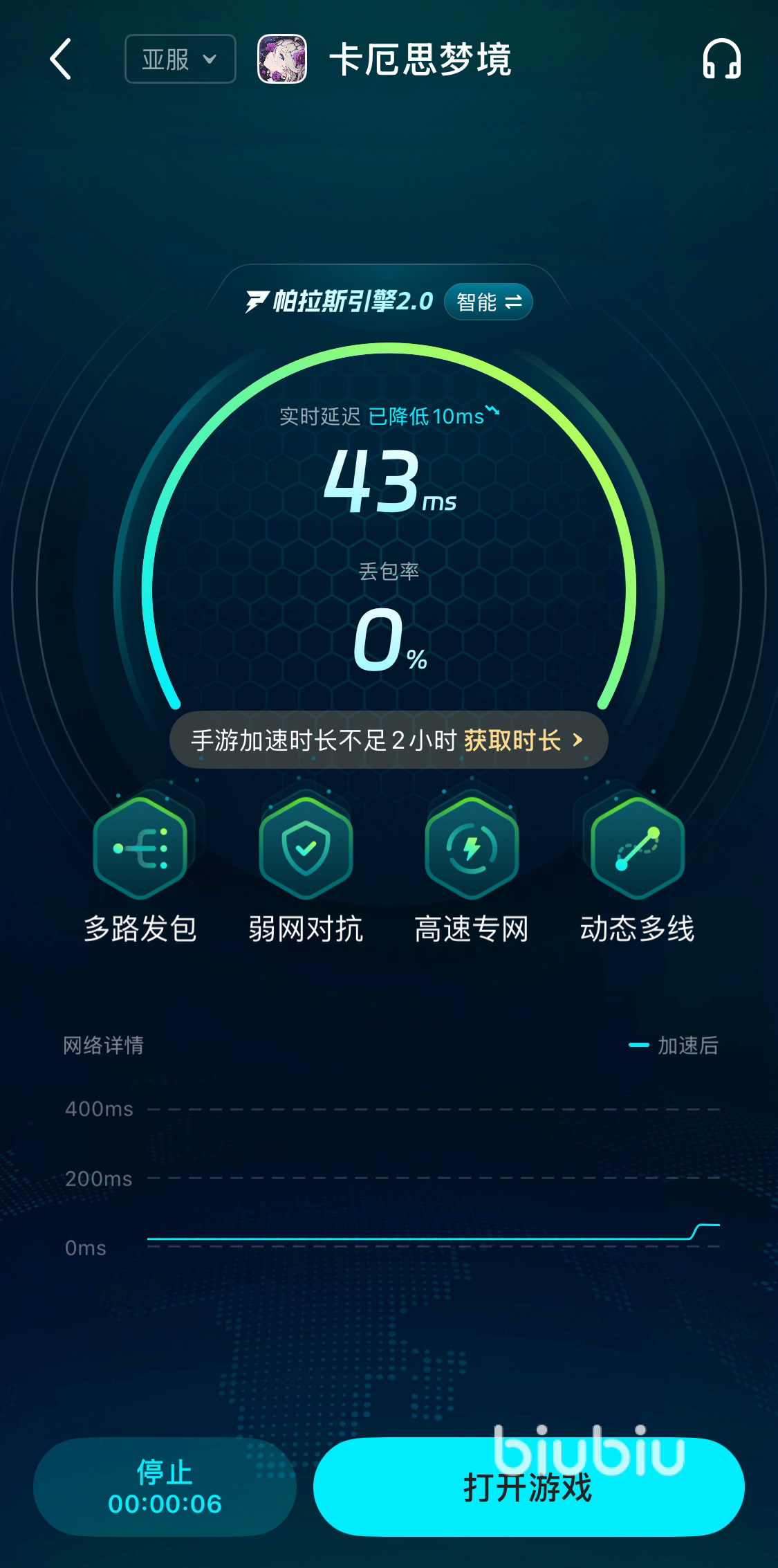 针对上述问题,专业级网络加速方案显得尤为重要。以biubiu加速器为例,其搭载的分块预载技术能够智能解析加密资源结构,优先加载核心美术素材与技能动画内容,并跳过非关键性校验流程,实测可将下载效率提升3倍以上。与此同时,该加速器具备智能CDN调度能力,可在毫秒级内感知网络波动并自动切换至低延迟、低负载的优质服务器节点,有效避开拥堵链路,使原本高达300ms的延迟显著降低至约60ms,实现真正意义上的流畅运行。