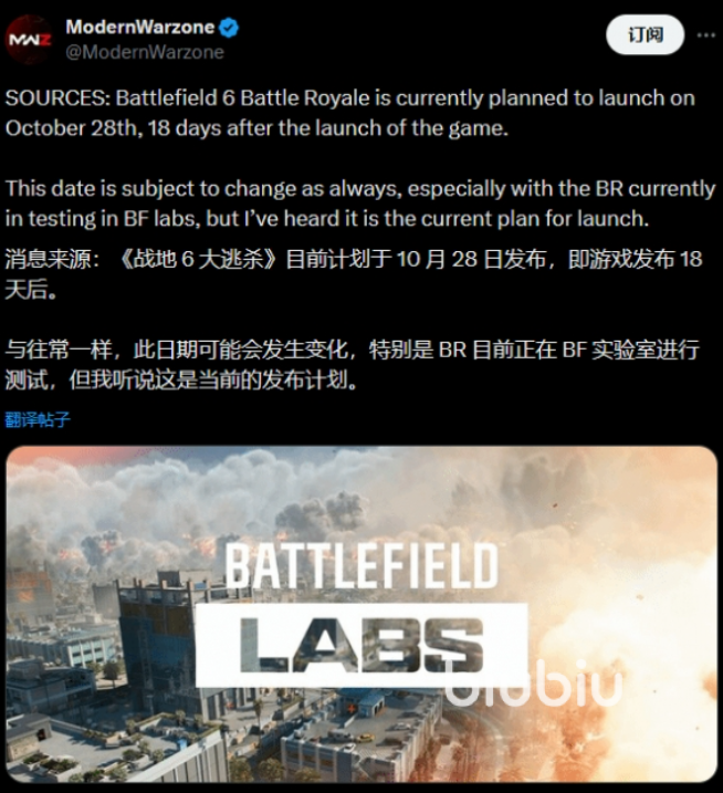 2025年10月27日 18:03 来源:小速战地6不仅在单人剧情和多人对战方面实现了全面进化,更首次引入了独立的大逃杀玩法,这一全新模式的加入为整个系列注入了强劲的新鲜血液,也让全球玩家对这款作品的关注度持续升温。那么,关于战地6大逃杀模式的具体上线时间爆料究竟是什么?接下来就为大家带来详细解读,感兴趣的朋友务必仔细了解。