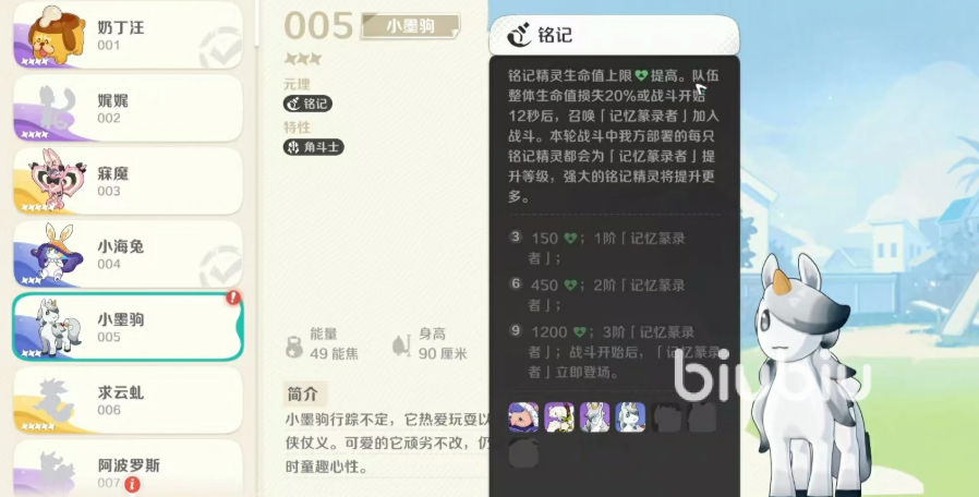 在阵容搭配方面,若选择以铭记体系为核心,小墨驹的协同效果将更为明显。目前游戏中铭记类精灵数量较多,当队伍中有三只铭记精灵同时上场时,全队可获得总计150点血量提升,整体生存能力得到保障。推荐与其组队的精灵包括睡魔、框框蛇、银盐龟,这些组合不仅契合前期节奏,也能有效激活羁绊收益。